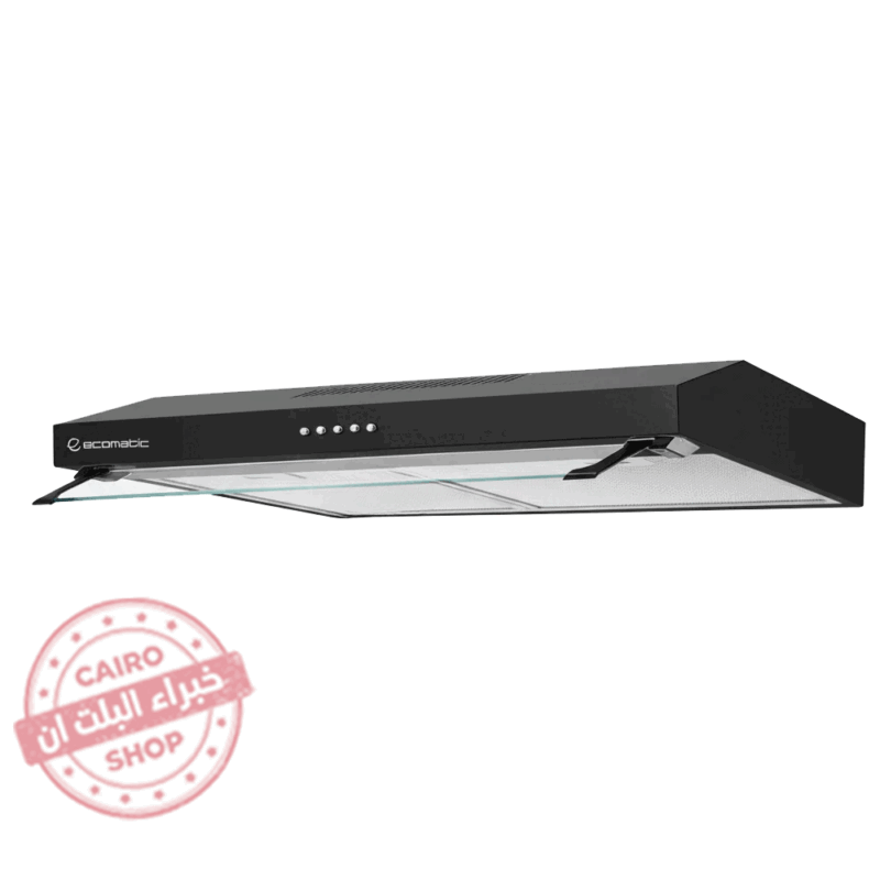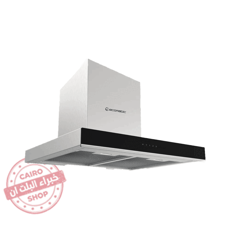 شفاط مطبخ حرف T إيكوماتيك 60 سم باللون الأسود بتصميم عصري وأنيق. مزود بـ 3 سرعات تشغيل وقوة شفط تصل إلى 1000 م³/س لتجربة طهي مريحة. يحتوي على فلتر معدني سهل التنظيف وفلتر كربوني، ويمكن تشغيله بنظام المدخنة أو الفلترة الداخلية. مزود بإضاءة LED موفرة للطاقة.
