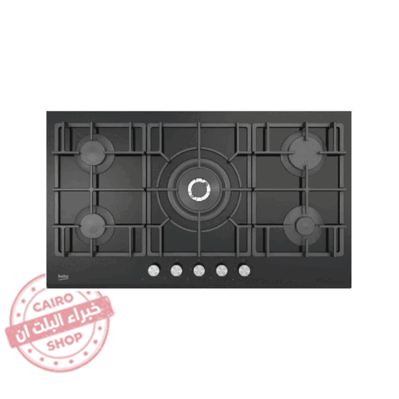 مسطح بيكو 5شعلة 90 غاز زجاج اسود حوامل زهر امان كامل HISW95226SEL